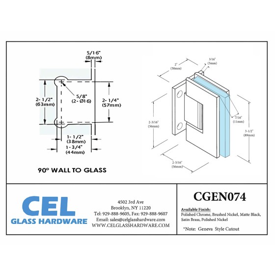 CV1E092, 90 Degree Glass-to-Glass Hinge