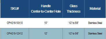 CPH215, Glass Mounted Offset Back to Back Pull Handle- Stainless steel 304 tube in 1.5mm thickness.