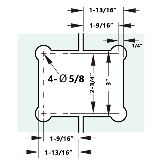 CP1N037, Wall Mount 'H' Back Plate Hinge for Frameless Shower Door