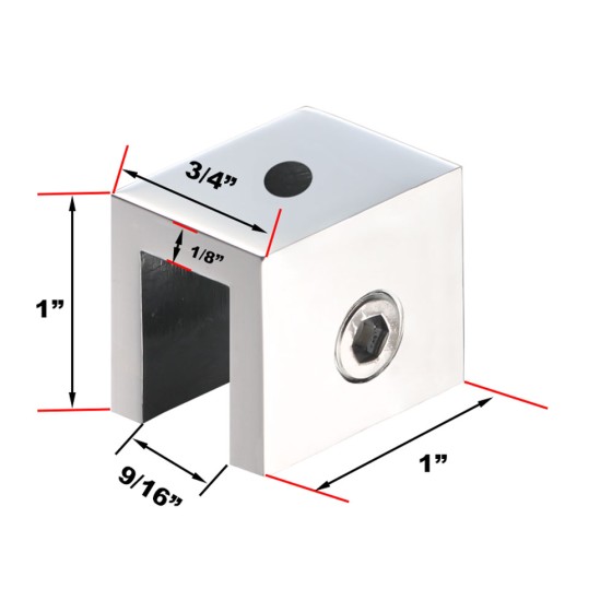 C2713, Square Corner, Shelf Clamp for 1/4" & 3/8" (Glass, acrylic or wood), No Drilling of Glass Required